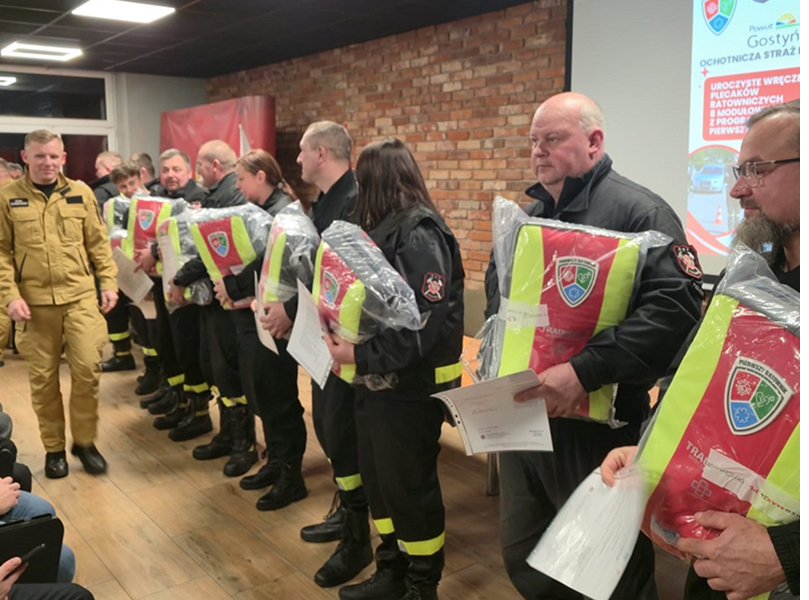 - Trwają szkolenia. Kurs pierwszej pomocy obejmuje zagadnienia związane z bezpieczeństwem w sytuacjach klęsk żywiołowych oraz sposobami ograniczania ich skutków, a także z postępowaniem w stanach nagłych, przy krwotokach i podczas resuscytacji. Od początku trwania projektu do końca 2025 roku ze szkoleń skorzystało już ponad 1700 osób. Każdy przeszkolony ratownik otrzymuje również zestaw modułowy w postaci plecaka ratunkowego, który w sytuacji kryzysowej stanowi pomocne narzędzie do ratowania ludzkiego życia – mówi Mariusz Roga. – Dodatkowo 48 strażaków ukończyło kurs instruktorski pierwszej pomocy. Zostali przygotowani do prowadzenia szkoleń z wykorzystaniem zaawansowanych metod i technik dydaktycznych – dodaje.